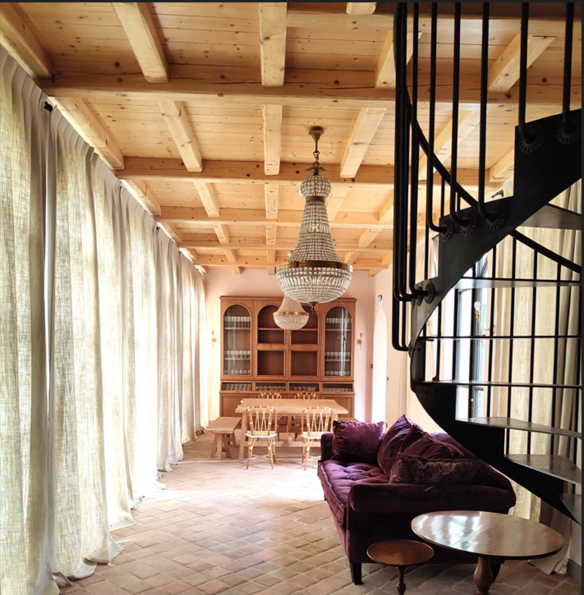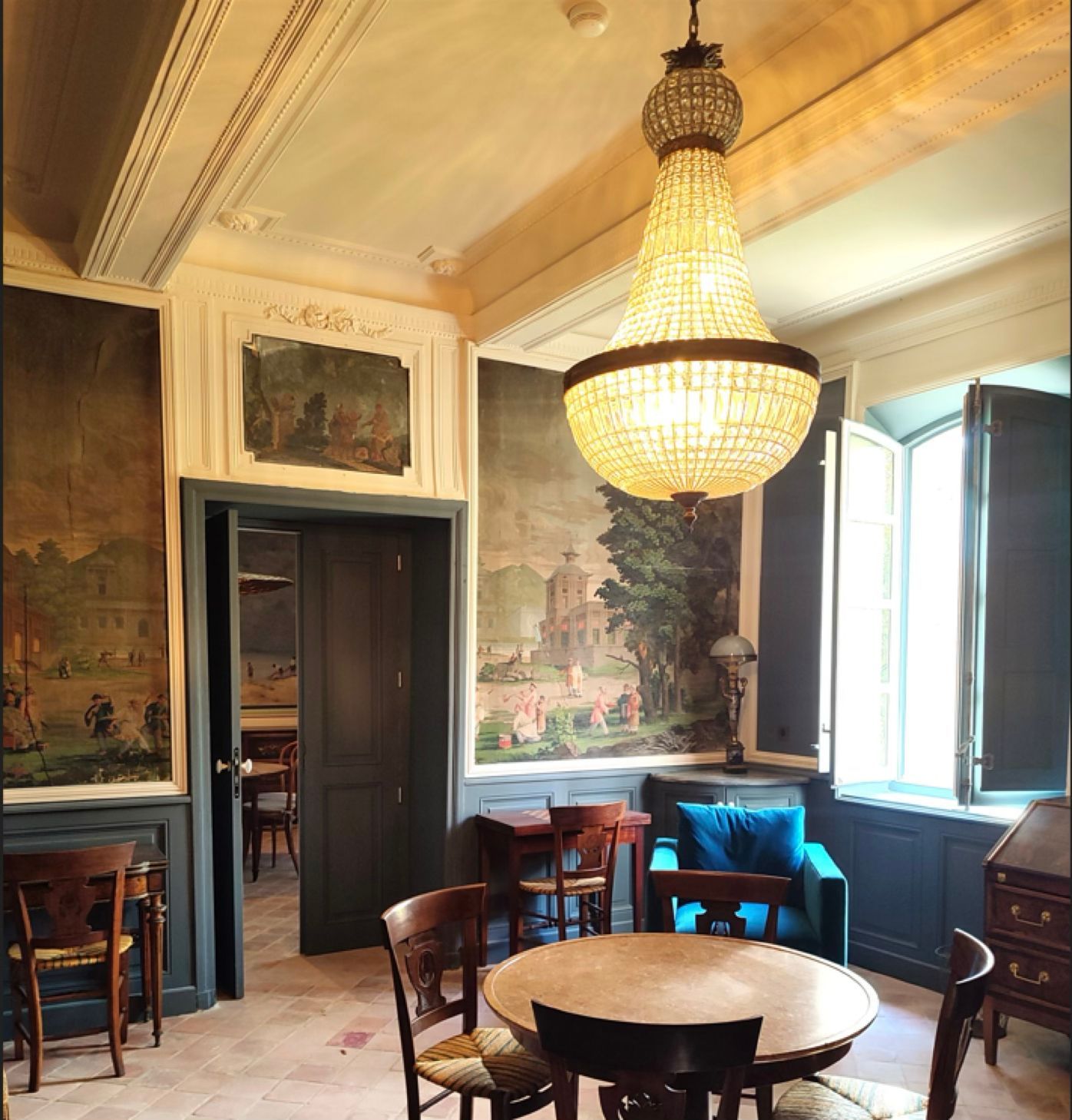 Réhabilitation du domaine : peinture sur les murs, plafonds, volets intérieurs, et extérieurs, lasure sur les plafonds.