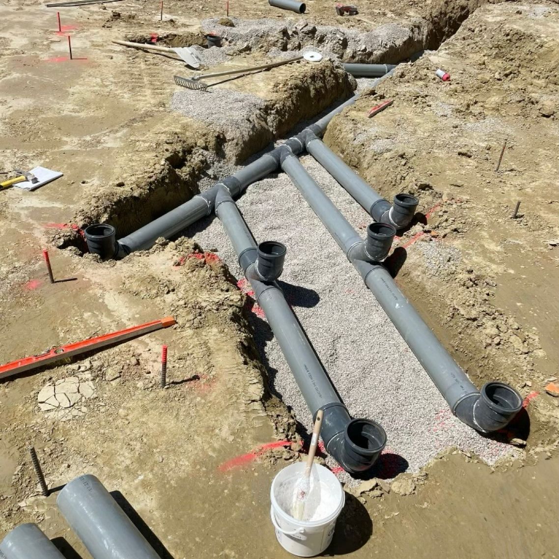 Pose de réseaux d'eau : Pour la Polyclinique Parc Rambot, nous avons réalisé un chantier de grande envergure comprenant la pose de 4,2 km de réseaux d'eaux usées, pluviales et secs, sous dallages et voirie. Ce projet, mené sur une durée de 10 mois, illustre notre expertise en VRD et notre engagement envers la qualité et la durabilité.